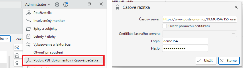 Nejprve nastavte v Praetoru v Nastavení – Podpis PDF dokumentů / časové razítko: