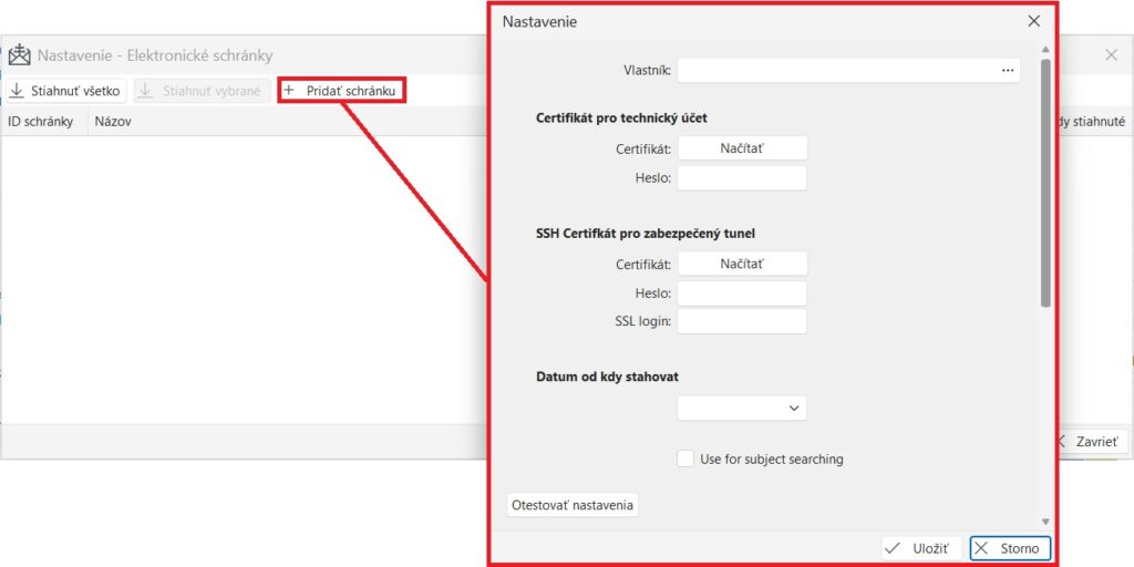 Prvotné nastavenie / úprava nastavení elektronickej schránky