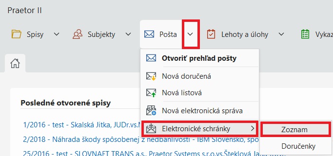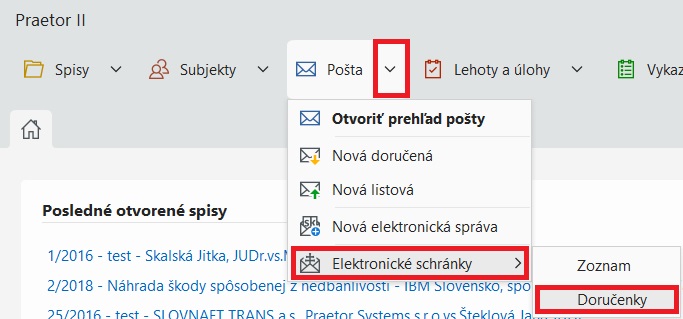 Doručenky stiahnete podobne ako správy, keď si otvoríte prehľad schránok (Pošta -Elektronické schránky – Doručenky).