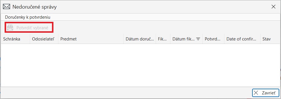 V prehľade si označíte riadky so správami, ktoré chcete potvrdiť, a kliknete na Potvrdiť vybrané.